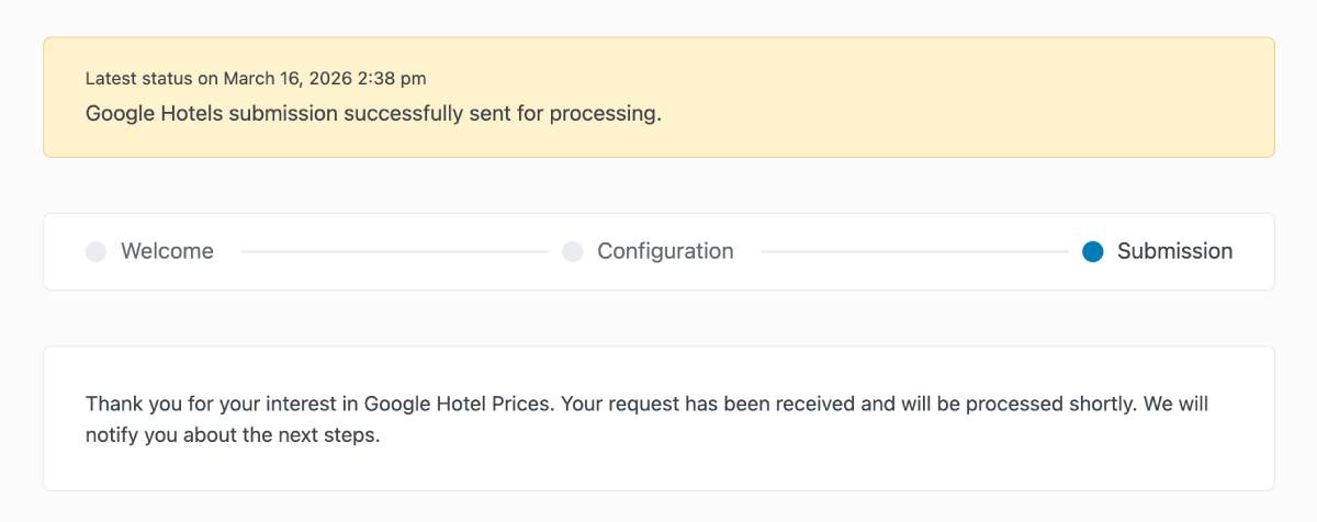 If you change your mind later, you can simply click “Disable Google Hotel Prices” at any time to remove your property from the submission.