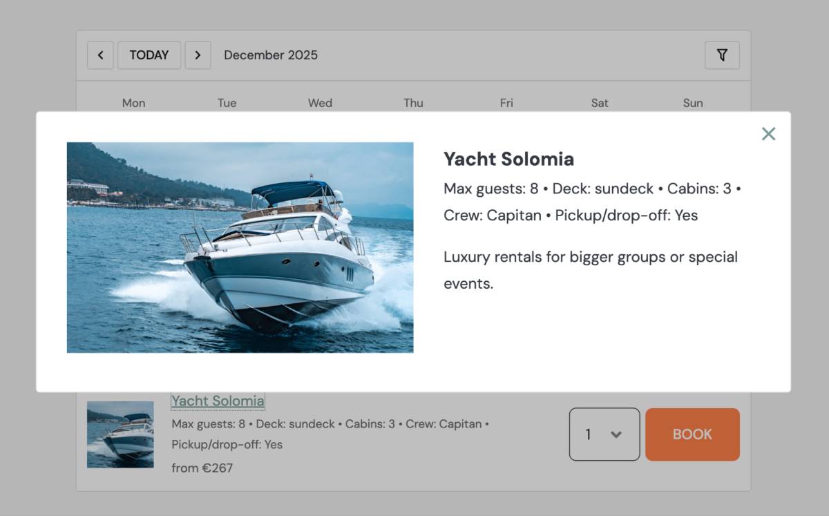 – Description (longer description) – opens upon a click on the rental item name.