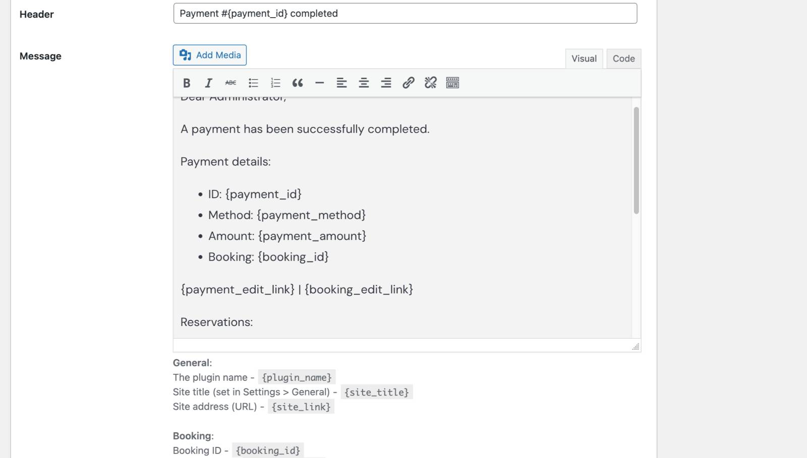 - Choose the notification type (e.g., “Booking Received,” “Booking Canceled”).