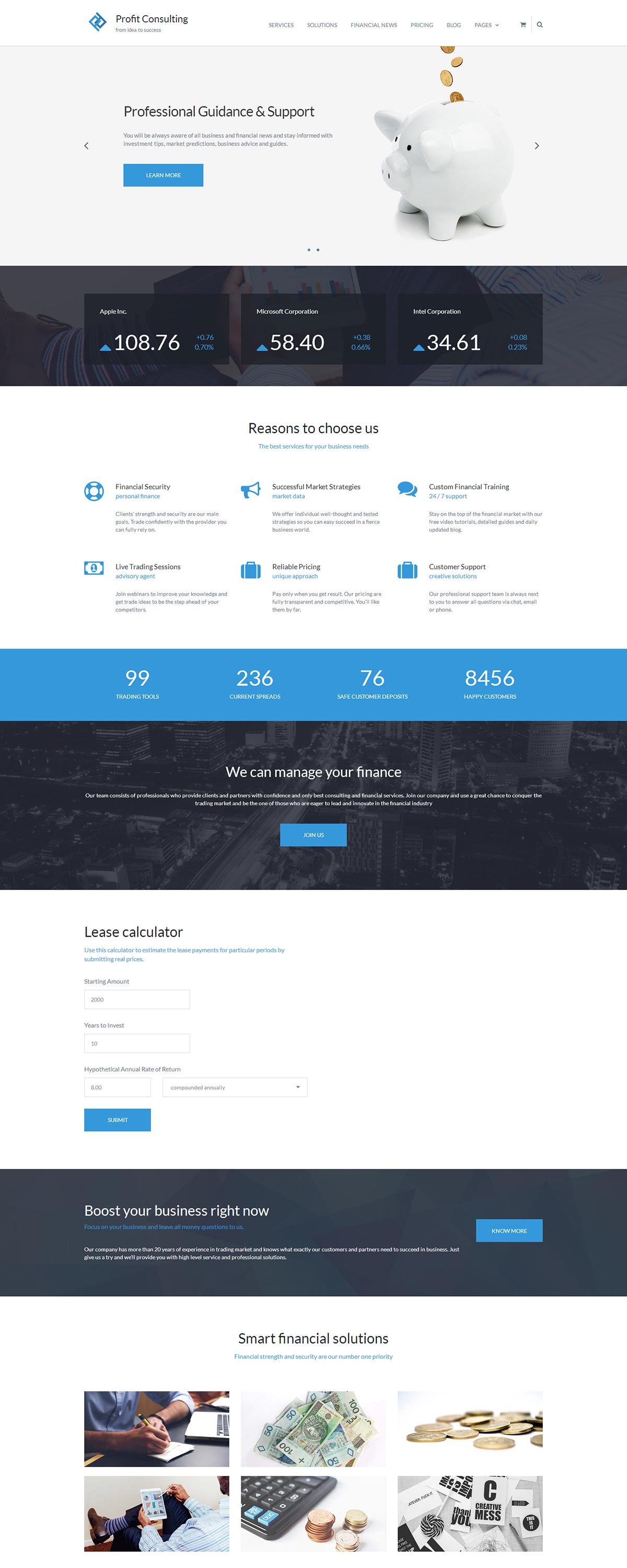 The theme offers a full range of in-demand content blocks to properly establish your online presence. You can display your projects in the Portfolio section, present offerings in Pricing tables, introduce the stuff in a Team section, put Newsletter form, edit Testimonials section, set Contact form, and adjust Google map to show your location.